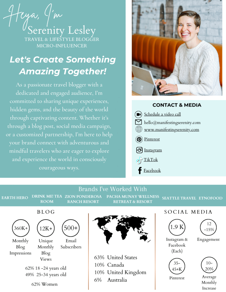 First, thank you for being here and I’m so incredibly excited to explore the ways that we can work together. Whether you are a tourism board, travel company, property, or have a product you’re wanting to have shine, I can help market your brand with authenticity and tenacity.