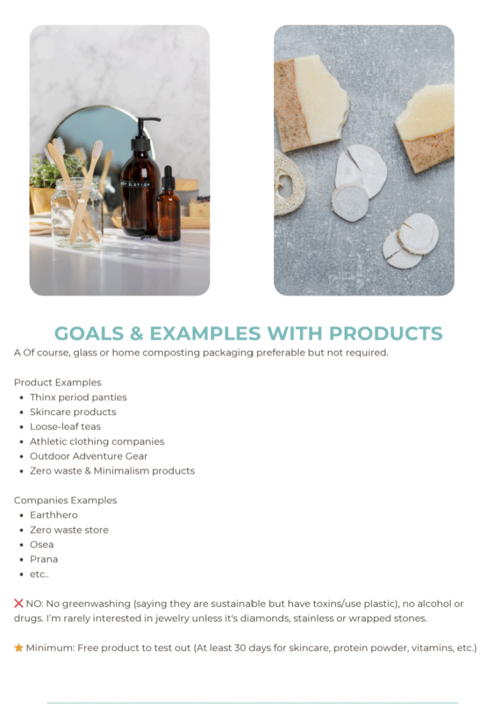 ⭐ Minimum: Free product to test out (At least 30 days for skincare, protein powder, vitamins, etc.)